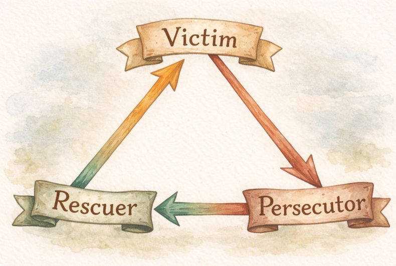 What makes the triangle so sticky is that each role can feel justified from the inside. The Victim feels harmed or powerless. The Rescuer feels needed and responsible. The Persecutor feels compelled to enforce standards or name what others will not. None of these positions are inherently malicious, and none of them tend to produce relief for very long.